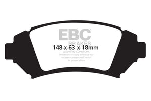 Designed for premium street driving offering better brake effect up to 600-degrees C (1100-degrees F). EBC Greenstuff has a high initial brake effect and gives drivers confidence from first application of the brake pedal. There is no such thing as a NO DUST pad. The very nature of how a brake works requires that some dust be generated to avoid rotor vibration (shimmying). The EBC pad creates less dust and dust is more easily washed off than most. All pads create more dust as they are bedding in especially if rotors are worn. Nominal friction coefficient 0.55. For heavier faster cars and vehicles above 200bhp we strongly recommend Redstuff which DOES offer much less dust.