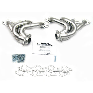 JBA shorty headers are one of the foremost performance upgrades you can bestow upon your beloved car, truck, or SUV. JBA Headers are significantly less restrictive than stock manifolds and dramatically increase the power and efficiency of your engine. Each header is constructed from durable stainless steel to endure the abuse of racing, towing, and daily driving – built to withstand it all. JBA’s proprietary Firecone collector design uses race proven technology for producing maximum power and torque gains where you drive most. Each system includes factory style emission connections and high-quality hardware for a professional no-leak installation.