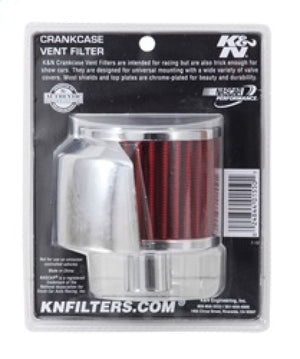 K&N crankcase vent filters are perfect for racing applications, vintage cars or individuals who want to add some aesthetics to their classic carbureted engine. The 62-1520 crankcase vent filter has a K&N embossed chrome top, steel base and comes with a deflector shield to protect against engine heat. The 1 inch diameter steel tube is designed to push in and clamp directly on to rubber or plastic tubing where venting is needed. This air filter is constructed with non-woven synthetic filter media so it can be cleaned and reused repeatedly. Note: Legal in California only for racing vehicles which may never be used, registered, or licensed for use upon a highway. See knfilters.com for CARB status on each part for a specific vehicle.