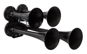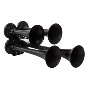 The model 141 black quad air horn delivers devastating truck air horn sound with compact, easy to install construction. This air horn can fit in almost any vehicle and deliver the big time loud air horn sound you need. Easy to fit, XCR2.0 black corrosion resistant finish and extreme sound. These loud air horns are the complete package Installation Instructions Installation Instructions