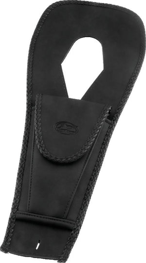 Contoured to hug the tank and felt-backed to protect the paint, Tank Bibs feature braided edges for unique style and utilize stock mounts for easy installation. Available with or without a pouch in your choice of plain or studs and a concho. Decorative studs are chrome-plated brass, not steel, and will never rust. Conchos are custom made from heavy die-cast zinc rather than thin stamping, and are hand-tied with genuine leather straps. Pouch Tank Bibs offer a custom look with sensible convenience and feature a soft, fabric-lined interior. The flap is easy to open and closes tightly via hook and loop.