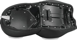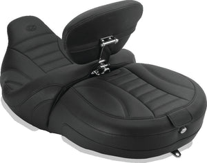 Feel the freedom of Mustang comfort on the Freewheeler™. This seat was designed with Freewheeler™ riders firmly in mind. The clean look and feel of the expanded vinyl cover and detailed automotive-inspired stitching has to be experienced first-hand. With Mustang's marine-grade fiberglass pan and all-day-comfort foam supporting you in the ideal cruising posture, you can ride your Freewheeler™ all day, every day. This seat also features a front bucket drain hole and built-in driver backrest receiver.