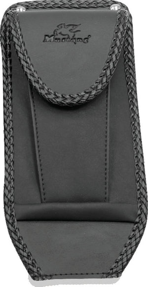 Contoured to hug the tank and felt-backed to protect the paint, Tank Bibs feature braided edges for unique style and utilize stock mounts for easy installation. Available with or without a pouch in your choice of plain or studs and a concho. Decorative studs are chrome-plated brass, not steel, and will never rust. Conchos are custom made from heavy die-cast zinc rather than thin stamping, and are hand-tied with genuine leather straps. Pouch Tank Bibs offer a custom look with sensible convenience and feature a soft, fabric-lined interior. The flap is easy to open and closes tightly via hook and loop.