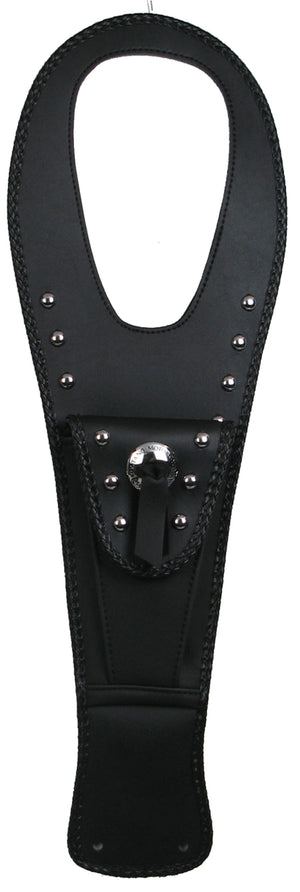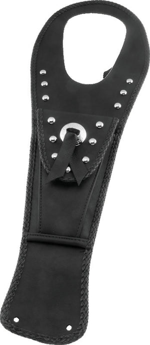 Contoured to hug the tank and felt-backed to protect the paint, Tank Bibs feature braided edges for unique style and utilize stock mounts for easy installation. Available with or without a pouch in your choice of plain or studs and a concho. Decorative studs are chrome-plated brass, not steel, and will never rust. Conchos are custom made from heavy die-cast zinc rather than thin stamping, and are hand-tied with genuine leather straps. Pouch Tank Bibs offer a custom look with sensible convenience and feature a soft, fabric-lined interior. The flap is easy to open and closes tightly via hook and loop.