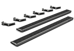 The Growler running board provides a clean yet aggressive look your vehicle. The Sure Grip tread design allows for ultimate traction in any condition. All aluminum construction with modular steel brackets offers long lasting durability and strength for all of your vehicle needs. Bolt-on brackets make installation quick and easy. This is a convenient option for work truck and fleet solutions. Installation Instructions Installation Instructions