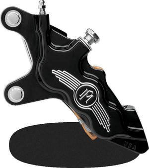 Differential bore technology has been applied to these 6 piston calipers. Precision CNC machined from billet aluminum, making them the most powerful and stylish brakes available for new generation bikes. The PM logo is machined on the caliper to let on-lookers know you are stopping in style.
