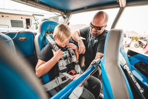 With the shoulder straps sewn to the lap belts, the 4.3 Harness makes it easy to strap in and start riding. This 4 point harness with 3" belts has sewn in pads for comfort, all black hardware for cool styling and EZ adjusters on the shoulders. The EZ adjusters allow you to adjust your shoulder straps quickly and even if they are dirty or muddy. The seat belt also has a removable sternum strap, and a red latch guard on the lap belt. The lap belt bolts in. The shoulder harness and crotch strap can either bolt down or wrap around a roll bar. Warning: Proper installation and consistent use of restraint system is critical to your safety in event of accident. Follow included installation insturctions closesly.