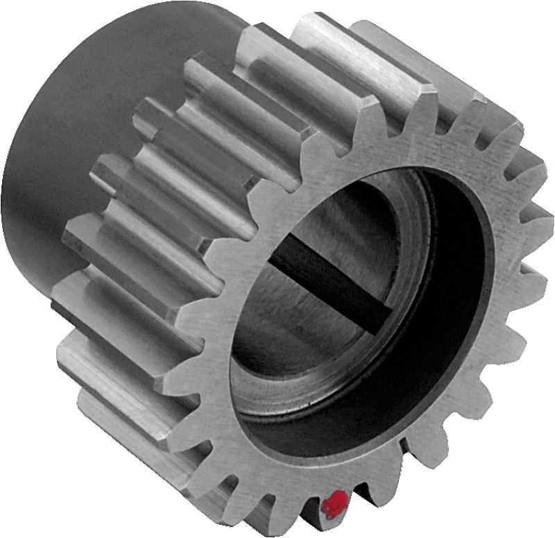 Pinion gear for use on 1977-1989 big twin engines and S&S flywheels for 1977-1999 engines, including S&S SH-Series and V-Series engines. Includes medium size (Red) Oil pump 24T drive gear.