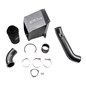 WCFab 2001-2004 GM LB7 6.6L Duramax Stage 2 Intake Kit with Air Box. This high flow, fabricated aluminum intake pipe and air box enclosure with dry filter assembly replaces the restrictive plastic factory parts on your diesel for improved engine performance. All new design significantly increases air flow to your turbo producing improved horsepower and torque, quicker throttle response, and cooler intake temperatures by drawing cold air through the inner fender. All aluminum construction features large diameter 4" piping with smooth aerodynamic bends to improve intake air velocity, volume, and provide more aggressive engine and turbo sound during acceleration. High quality hardware, silicone boot, seals, and stainless steel t-bolt clamps ensure optimum durability and ease of installation. Removable air box lid elementallows for easy visual inspection and maintenance of your WCFab filter with included hydrophobic pre-filter cover, to help keep your MAF sensor, turbo, and engine airways contaminant free. Includes High Flow 4 in. Turbo Intake Horn which removes restrictions in the OEM setup to improve turbo spool and top end power. This High Flow 4 in. horn is fully compatible with OEM and upgraded drop in IHI style turbochargers. Full assembly finished in your choice of WCFab's signature custom powder coat colors for a look as unique as your truck.
