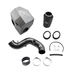 WCFab 4" Intake Kit with Air Box for 2013-2018 6.7L Cummins equipped Ram 2500 / 3500 truck with OEM / factory style turbocharger. - - This high flow, fabricated aluminum intake pipe and air box enclosure with dry filter assembly replaces the restrictive plastic factory parts on your diesel for improved engine performance. All new design significantly increases air flow to your turbo producing improved horsepower and torque, quicker throttle response, and cooler intake temperatures by drawing cold air through the inner fender and ram air duct in the grille. All aluminum construction features large diameter 4" piping with smooth aerodynamic bends to improve intake air velocity, volume, and provide more aggressive engine and turbo sound during acceleration. - - High quality hardware, silicone boot, seals, and stainless steel t-bolt clamps ensure optimum durability and ease of installation. Removable air box lid element allows for easy visual inspection and maintenance of your WCFab filter with included hydrophobic pre-filter cover, to help keep your MAF sensor, turbo, and engine airways contaminant free. Air box provides mounting provision for the OEM air box actuator so that it can remain plugged in for CEL free operation, but keeps both grille and fender ports fully open for maximum air flow to your turbo. - - Full assembly finished in your choice of WCFab's signature custom powder coat colors for a look as unique as your truck. Made in USA. - - Replaces the following MOPAR Part Numbers: 53032944AL, 53032944AC, 53032944AD, 53032944AE, 53032944AF, 53032944AG, 53032944AH, 53032944AK, 68137142AC, 68137142AB - - Note: Air box is NOT compatible with intake pipe from kit WCF100863.