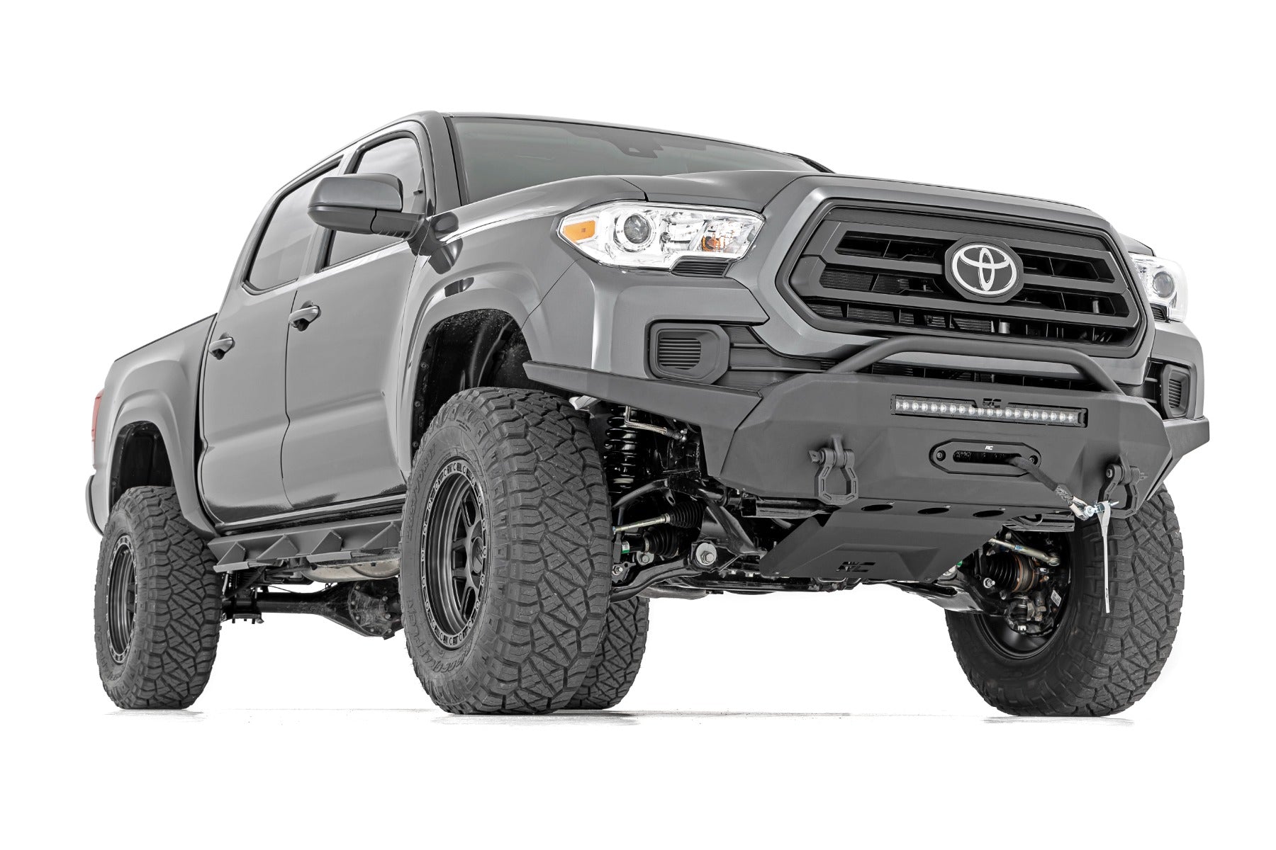 Rough Country's 3.5in Bolt-On Kit offers easy installation and aggressive good looks at an incredible value. Take your truck to new heights with this excellent option for 05-20 Toyota Tacoma. This kit features a set of high-quality, tubular Upper Control Arms designed to make alignment adjustments easier and durable rubber bushings. These arms are designed to promote a factory-like geometry by keeping the ball joint at optimum angles after lifting. This design allows for an improved, greater range of motion from the ball-joint, with less stress, wear and tear. Rough Country’s 3.5-inch Bolt-On Kit features N3 Nitrogen-charged shocks, giving your truck incredible ride-quality both on and off-road. Also included are a set of loaded N3 struts and fabricated rear blocks to provide lift height from front to rear. Once installed, this kit gives your truck plenty of ride height for larger tires while offering a clean, level look from front to rear. This all-inclusive kit comes with everything you need, and installation is a piece of cake compared to other kits on the market! Featuring a 100% bolt-on installation process that requires zero cutting or drilling, this kit can be installed using common tools in a home garage, and allows the truck to be returned to stock at any time if so desired. Best of all this kit features Rough Country’s Lifetime Replacement Warranty.