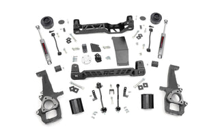 Give your RAM 1500 the perfect blend of performance, protection, and style with Rough Country's 4-inch Suspension Lift. Designed to offer an affordable way to maximize off-road performance and run up to 35-inch tires, these kits offer high quality, heavy-duty equipment for new model RAM 1500ΓÇÖs. Utilizing heavy-duty, laser cut, steel equipment engineered by Rough Country, these 4-inch Suspension Lifts are complete kits that include everything needed for outstanding off-road performance. High-clearance front and rear cross-members provide enough room for off-road climbs and runs. A heavy-duty skid plate shields the vehicleΓÇÖs differential, protecting you from hazardous terrain. A durable set of driver and passenger side lifted cast knuckles are also included, helping to promote proper geometry once the vehicle is lifted. And for true trailblazers, this kit also ships with a set of rear Performance 2.2 shock absorbers - Rough CountryΓÇÖs premiere shocks; valved specifically for unparalleled off-road performance. Best of all? You'll achieve better performance, bigger tires, and considerable protection all without sacrificing the look of your truck. All components are specifically designed to keep things nice and tidy underneath, utilizing drop brackets to promote proper geometry and leaving nothing hanging out in plain sight. The beefy cross members feature a laser-cut RC logo, giving the truck a fierce, but streamlined look after lifting. Includes Rough Country's Lifetime Replacement Guarantee!