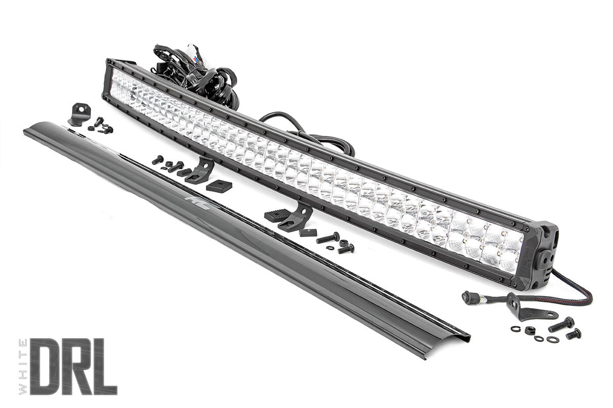 COMMAND THE DARK: Stay out later on the trails with Rough Country's powerful 40-inch Dual Row Curved LED Light Bar with Cool White DRL. With a jaw-dropping 36,000 Lumens and 400 Watt output, this CREE LED light is a sight to behold.Rough Country's DRL Light Bars feature a strip of LEDs designed to illuminate similar to the daytime running light option of modern headlights. This strip of LED backlighting gives your vehicle increased visiblity and an interesting look.Rough CountryΓÇÖs LED Light Bars include a durable die-cast aluminum, IP67 waterproof housing for unsurpassed protection against the elements. Each LED also features an IP68 waterproof wiring harness with a three-position toggle switch and in-line fuse. For peace of mind, each LED also includes Rough CountryΓÇÖs 3-year Warranty.