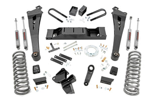 Compliment your RAM 3500's aggressive, good looks with Rough Country's 5-inch Lift Kit for dually models. RAM Trucks come with a wealth of impressive features right from the factory. Rough Country's new 5-inch kit was engineered to retain these impressive factory specs while bumping up performance and durability where it's needed most. The result is a lifted beast with a mean profile and lush ride-quality that'll make other RAM owners wonder where you got yours from! When changing a vehicle's suspension, the key to preserving ride quality is in keeping the geometry of all suspension components as close to their factory angles as possible. Rough Country's 5-inch Suspension kit features a set of ultra-durable Radius Arms, precision fit to bolt right into the factory mounts for an easier install and a more factory-like angle. These beefy, upgraded Radius Arms also feature a durable, durable rubber bushings for maximum vibration absorption. This kit also includes a set of front, lifted coil springs for unparalleled ride quality from your lifted Dodge Ram.