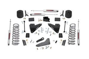 Compliment your RAM 2500's aggressive, good looks with Rough Country's 5-inch Lift Kit. New model RAM Trucks come with a wealth of impressive features right from the factory. Rough Country's 5-inch kit was engineered to retain these impressive factory specs while bumping up performance and durability where it's needed most. The result is a lifted beast with a mean profile and lush ride-quality that'll make other RAM owners wonder where you got yours from! Rough CountryΓÇÖs 5-inch Lift Kit is designed for Dodge RAMΓÇÖs equipped with either factory rear coils or factory rear air ride suspension. On Air Ride models, this kit uses a rear air bag spacer that works with the factory air bag to provide rear lift. This kit also features a Rear Sensor Arm Relocation Bracket that can modify how the sensor link speaks to the computer to determine what the ride height is. This allows you to adjust the amount of rear height up to 1-inch higher than the front by way of multiple mounting points spaced by 1/4-inch. Pick the mounting point you want for the rear ride height you prefer. When changing a vehicle's suspension, the key to preserving ride quality is in keeping the geometry of all suspension components as close to their factory angles as possible. Rough Country's 5-inch Suspension kit features a set of Radius Arm Drop brackets allowing you to retain the beefy factory arms while keeping everything at optimum angles. This kit also features a set of front, lifted coil springs, anti-wrap rear blocks and N2.0 Shocks for a fantastic blend of smooth highway ride and awesome off-road performance.