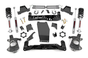 Get the look you really want with Rough Country's 6-inch Suspension Kit for 4WD '14+ Chevy / GMC 1500 Pickups. This massive kit affords your truck the ability to run 33-inch tires on factory wheels with our beefy lifted knuckles and is designed with 100% laser-cut materials for the best possible fit on your vehicle. Includes a set of front and rear high-clearance cross members featuring the "RC" logo and a differential skid-plate. Each kit also comes with a set of durable, fabricated anti-wrap lift blocks that offer a huge boost while helping prevent axle wrap issues. Give your pickup an aggressive, lifted and level stance with incredible ride quality! Our innovative Lifted Knuckle design boosts ride height while keeping all components at the optimum angles for a factory-like ride. This kit includes a set of rear N3 Shocks, balanced for on and off-road use. Includes Rough Country's Lifetime Replacement Warranty.