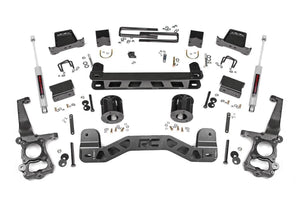 Give your 2015+ 2wd Ford F-150 an aggressive new look and unparalleled off-road performance with Rough Country's 6-inch Suspension Lift. This all-inclusive kit features everything needed to take your 2wd F-150 off the freeway and into the fields. Featuring a set of durable lifted knuckles and strut spacers, you'll gain enough ride height to run up to 35-inch tires with proper wheel spacing! A set of sway-bar drop brackets, brake line brackets, and a drive shaft spacer help keep everything at optimum angles for a factory-like ride, even after lifting. A 1/4-inch thick plate steel front and rear crossmember bring uncompromised strength and good looks to your truck, and are updated to fit the new F-150 design. Our Fabricated Rear Blocks offer considerably more strength than their cast iron counterparts, and were specifically engineered by Rough Country to prevent against axle-wrap. A set of Rough Country's premium N3 shocks are also included in this kit, featuring a large diameter body with a chrome-hardened piston rod and long-lasting polyurethane bushings. Best of all, Rough Country's 6in Ford F-150 Lift Kit is backed by our Lifetime Replacement Warranty.
