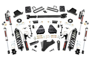 Explore New Heights. Give your fourth-generation Ford Super Duty superior lift height with Rough Country's 6-inch Coilover Suspension Lift Kit! This all-inclusive kit comes with everything you need for a total transformation of your truck. Run up to 37in tires while preserving the smooth, factory ride quality with this impressive upgrade.\Durable Components. When changing a vehicle's suspension, the key to preserving ride quality is keeping the geometry of all suspension components as close to their factory angles as possible. Rough Country's new 6-inch Suspension Lift features a set of ultra-durable radius arm drop brackets, precision fit to bolt right into the factory mounts for an easier install and a more factory-like angle. Utilizing this conversion kit you're removing the factory independent coil shock and coil set-up and replacing it with a massive 2.5in piston, nitrogen-charged, 8-stage adjustable Vertex Coilover. Rough Country’s Vertex Coilovers feature a monotube design with an external reservoir for increased oil capacity and damping sensitivity. When it comes to investing in a high-end kit, you’ll be pleased to find that Rough Country’s 2.5in piston design is beefier and offers an impressive 56% greater fluid capacity than the average reservoir shock. Each kit is paired with a monotube shock that provides optimal damping control.\Installation. Requiring cutting and drilling to install, an estimated timeframe of 6-10 hours is recommended to complete this full installation. This full kit can be installed at home and can be completed efficiently and quickly!\Limited Lifetime Replacement Warranty. Rough Country's 6-inch Coilover Suspension Lift Kit is backed with a limited lifetime replacement warranty towards manufacturer defects. As such, the product is protected from structural and workmanship damage after the date of purchase. With our industry-leading warranty give yourself peace of mind when using Rough Country's Suspension products!