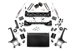You'll never look at a Tundra the same way after installing Rough Country's 6-inch Toyota Tundra kit. This all-inclusive kit is a total transformation for your truck, with durable lifted knuckles, protective skid plate, and all the brackets and hardware needed to set your truck to a factory-like geometry while providing additional ground clearance. The beefy front crossmember features a high-clearance design to help traverse off-road obstacles with no hang-ups.Run larger wheels and tires while giving your truck a one-of-a-kind look and exceptional off-road performance. This kit affords your truck an aggressive appearance and a higher profile that is sure to demand attention. This kit includes Rough CountryΓÇÖs Nitrogen-charged N3 Shocks for the ultimate balance in highway ride quality and off-road vibration dampening. Includes Rough CountryΓÇÖs Lifetime Replacement Guarantee.