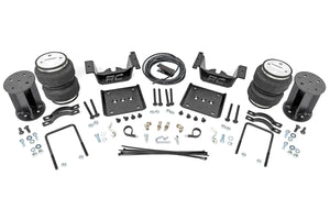 Ideal Leveling. Is your truck your workhorse? The main attraction to the pick-up line is the accessibility to haul and tow as desired. However, due to the amount of weight in the bed, or the condition of the vehicle's rear leaf springs, this can cause the vehicle to be un-level when under load. Here at Rough Country, we created an innovative new product to ensure that these are troubles of the past. Introducing, Rough Country's Rear Air Spring Kit.Heavy-duty Construction. Rough Country's Rear Air Spring Kit features two RC branded high-quality double convoluted airbags complemented with DOT-approved airlines. Whether you plan on towing or hauling in the not-so-distant future Rough Country's Air Spring kit is the must-have accessory to ensure that your trailer is level reducing the weight off of the tongue of your trailer.  Each kit offers 1/4" push connector fittings and all of the bracketry needed to ensure installation is lightning fast and secure! Rough Country's Air Spring kit provides up to 5,000 lbs of load support to ensure that you experience less sway and bottoming out when braking and steering! \Installation. With an estimated timeframe of 1-2 hours this full kit can be installed at home using standard tools and can be completed efficiently and quickly!\Limited Lifetime Replacement Warranty. Rough Country's Rear Air Spring Kit is backed with a limited lifetime replacement warranty towards manufacturer defects. As such, the product is protected from structural and workmanship damage after the date of purchase. With our industry-leading warranty give yourself peace of mind when using Rough Country's Suspension products!