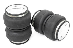 Ideal Leveling. Is your truck your workhorse? The main attraction to the pick-up line is the accessibility to haul and tow as desired. However, due to the amount of weight in the bed, or the condition of the vehicle's rear leaf springs, this can cause the vehicle to be un-level when under load. Here at Rough Country, we created an innovative new product to ensure that these are troubles of the past. Introducing, Rough Country's Rear Air Spring Kit.Heavy-duty Construction. Rough Country's Rear Air Spring Kit features two RC branded high-quality double convoluted airbags complemented with DOT-approved airlines. Whether you plan on towing or hauling in the not-so-distant future Rough Country's Air Spring kit is the must-have accessory to ensure that your trailer is level reducing the weight off of the tongue of your trailer.  Each kit offers 1/4" push connector fittings and all of the bracketry needed to ensure installation is lightning fast and secure! Rough Country's Air Spring kit provides up to 5,000 lbs of load support to ensure that you experience less sway and bottoming out when braking and steering! \Installation. With an estimated timeframe of 1-2 hours this full kit can be installed at home using standard tools and can be completed efficiently and quickly!\Limited Lifetime Replacement Warranty. Rough Country's Rear Air Spring Kit is backed with a limited-lifetime replacement warranty towards manufacturer defects. As such, the product is protected from structural and workmanship damage after the date of purchase. With our industry-leading warranty give yourself peace of mind when using Rough Country's Suspension products!