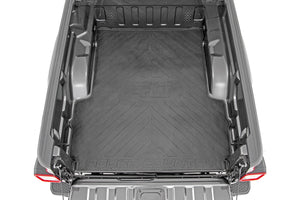 Innovative Design and Material. Keep your bed free from scuffs, scrapes, and scratches with Rough Country Bed Mats. These heavy-duty, 3/8-inch thick, contoured rubber mats are nearly indestructible; made from a high-quality rubber compound that won’t crack in extreme temperatures or fade when exposed to the sun. This stylized bed mat features a large "RC" and "Rough Country" logo with angled lines for an improved look that also protects your truck bed.\Installation. With a simple drop-in design, installation couldn't be easier. With an estimated timeframe of 10 minutes, this mat can be installed at home efficiently and quickly! Simply place the bed mat in, and roll it out and you're done!\Limited Lifetime Replacement Warranty. Rough Country's bed mats are backed with a limited lifetime replacement warranty towards manufacturer defects. As such, the product is protected from structural and workmanship damage after the date of purchase. With our industry-leading warranty give yourself peace of mind when using Rough Country products!