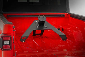 The Gladiator JT gives Jeep fans the best of both worlds, blending the tried and true Wrangler design into a unique pickup format, however, one of the most iconic Wrangler aspects is missing - the spare tire! Give your Gladiator a full spare tire and wheel with Rough Country’s Bed Mounted Tire Carrier. This durable, steel in-bed tire carrier is designed to carry up to a 40-inch tire, displayed prominently in the back bed. The adjustable mount allows you to position the carrier to accommodate different tire widths and wheel offsets. Each mount is powder coated black for a long lifespan of corrosion resistance and features rubber gaskets to keep your bed free from scrapes and scuffs. \Give your Gladiator an aggressive look and practical access to a full-sized spare anytime you need it with Rough Country’s Bed Mounted Tire Carrier! Includes a Lifetime Replacement Guarantee.