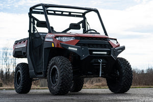 Enhance the look and capabilities of your Polaris RangerΓÇÖs front bumper with Rough CountryΓÇÖs Front Bumper Panels with 6-Inch LED Lights. This innovative add-on installs directly on to the factory bumper giving your UTV a more mancing appearance and additional front-end illumination. These durable 11-gauge steel panels offer a sleek, modern look that extends to the edge of the front end assembly.\Each panel holds a 6-inch Rough Country Slimline LED Lightbar providing 2.880 lumens of off-road lighting so you can always see the trail ahead. Encased in an IP67 waterproof housing, Rough CountryΓÇÖs LED lights are engineered to tackle tough terrain and withstand the elements.\With a few simple modifications to the factory bumper, this easy-to-install shroud system makes for an excellent upgrade to your Polaris RangerΓÇÖs front bumper!