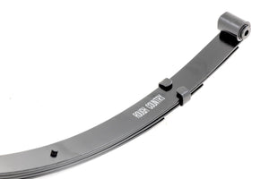 Added Lift Height and Ride Comfort. Take your suspension kit to the next level with Rough Country's Replacement Leaf Springs. Constructed from high-quality materials and designed specifically for the weight of your vehicle. This enhanced replacement spring will provide a factory-like feel while retaining your suspension lift height. Durable and Off-Road Ready. Rough Country's Replacement Leaf Springs are designed to tackle any terrain that they are faced with. Featuring a multi-leaf design and spring pads this reduces the friction and maximizes comfort. Each leaf pack utilizes tapered leaves for improved flexibility at their ends. Installation. Rough Country's Replacement Leaf Springs offer a 100% bolt-on installation estimated to take approximately 1-2 hours depending on vehicle condition. Simply remove the pre-existing leaf spring and use the stock hardware to equip your vehicle with this high-quality replacement. Lifetime Replacement Warranty. Rough Country's Replacement Leaf is backed with a 5-year replacement warranty towards manufacturer defects. As such, the product is protected from structural and workmanship damage after the date of purchase. With our industry-leading warranty give yourself peace of mind when using Rough Country's Suspension products!
