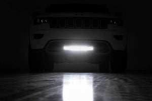 Add LED lighting to your Grand Cherokee quickly and easily with Rough CountryΓÇÖs 20in Hidden Bumper LED Kit! This easy-to-install solution lets you mount a 20in Rough Country Dual-Row LED Light Bar just behind the mesh opening in the front bumper. COMMAND THE DARK with this convenient, forward-facing lighting product that makes it easy to see the trail ahead, with powerful LED illumination provided by Rough CountryΓÇÖs 20in Dual Row LED Light Bar. Each kit includes your choice of Rough CountryΓÇÖs Chrome-Series or Black-Series Light Bars with optional DRL capabilities for the exact look you desire. Best of all, this kit is easy to install - with no cutting or drilling required - making it easy to upgrade the front-end of your WK2 Grand Cherokee with this impressive lighting system. Includes a 3-year warranty!