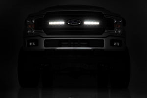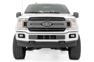 COMMAND THE DARK with Rough CountryΓÇÖs 10in LED Grille Kit for 18-20 F150 XLT. This sleek, recessed LED kit fits into the two slots in the factory grille, providing the perfect location for forward-facing LED power. Rough CountryΓÇÖs 10in LED Grille Kit fits in so well it looks like a factory upgrade! Despite the tiny size, this powerful, dual 10in LED setup provides a jaw-dropping 4,800 lumens of lighting power with a flood beam pattern, enough to light up the trail ahead and then some! Each LED features a die cast aluminum housing and IP67 waterproof rating, so itΓÇÖs sure to withstand the elements each and every time. Upgrade your 18-20 F150 XLT with Rough CountryΓÇÖs 10in LED Grille Kit today and release your truckΓÇÖs true potential!
