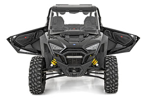 Are you fed up with Dirt, mud, and debris coming through the half-door of your RZR? Rough CountryΓÇÖs Lower Door Insert is a great solution that wonΓÇÖt break the bank. This innovative product completes the door by filling the missing lower half with a polypropylene injection panel. In no-time time you can have the coverage that a full door provides, ending the frustration of mud-filled floorboards.\This easy-to-install panel kit comes with two polypropylene injection panels that are molded for a precise fit and feature a flat black finish to hold up in the harshest outdoor elements. The kit Simply attaches to the interior of the stock door using the factory equipment-making for a factory-like appearance!