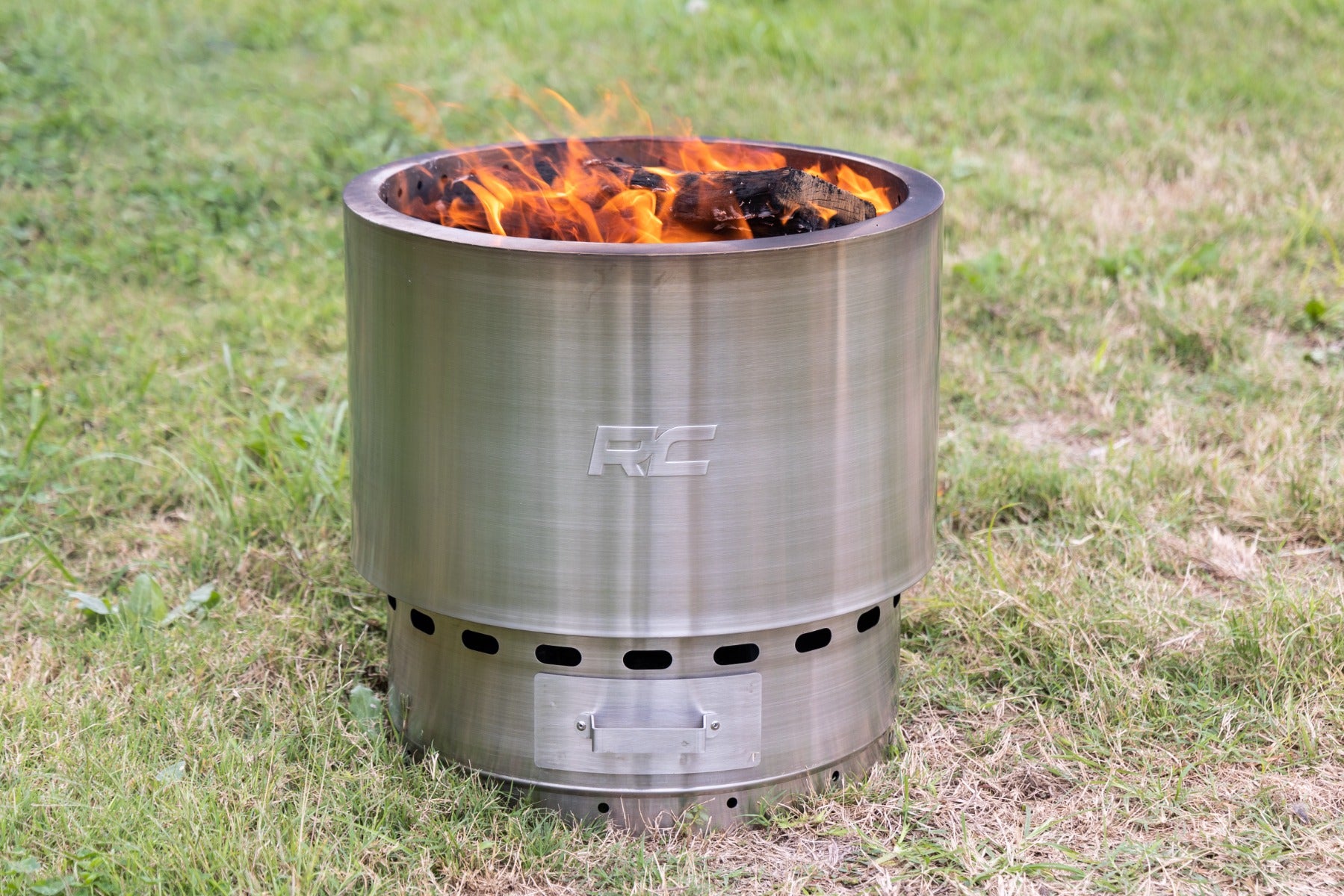 Start a campfire in a flash! Portability and readiness are two major components of ensuring that you are prepared for your next outdoor outing. Here at Rough Country, we are bringing the best accessories to market! Introducing Rough Country's Stainless Steel Smokeless Fire Pit w/Carry Bag!\Durable Stainless Steel Construction. Rough Country's Stainless Steel Fire Pit is made of high-quality 304 brushed stainless steel and boasts an efficient slow burn low smoke design. Rough Country's Stainless Steel Fire Pit features a tall 20" by 19.5" wide body that allows the use of up to 17.25" long logs. This handy unit includes a convenient ashtray for easy cleaning and a storage bag to bring your new favorite accessory on any outing that you have planned! \Setup on any terrain! Rough Country's Stainless Steel Smokeless Fire includes a 2.75" tall stand that allows this unit to be placed on any terrain. From grass to decks this handy stand allows the fire pit to be raised off of the ground allowing airflow to pass under the unit and conveniently stores inside the fire pit after use!\One Year Warranty. Rough Country's Stainless Steel Smokeless Fire Pit is backed with a one-year replacement warranty towards manufacturer defects. As such, the product is protected from structural and workmanship damage after the date of purchase. With our industry-leading warranty give yourself peace of mind when using Rough Country's Suspension products! \