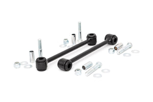 Superior Performance. Keep your Wrangler handling like a pro with Rough Country Rear Sway Bar End Links. These rear-end links ensure that all suspension geometry remains intact, so nothing gets out of hand when lifting your JK. Rough Country's Rear Sway Bar Links offer instant handling improvement and the ability to fine-tune your suspension for ultimate weight distribution. The Rough Country Rear Sway Bar Links for Jeep Wrangler JK are a replacement for stock sway bar links and will give you superior performance ride quality both on and off the trail.\Heavy-Duty Reliability. Turn your vehicle into a solid off-roader with the heavy-duty Rough Country Rear Sway Bar Links. You don't have time for weak links when you're on the trail. And that's why Rough Country Rear Sway Bar Links are built to withstand the toughest driving conditions. Constructed from steel and a black powder-coat finish, our Rear Sway Bar End Links add strength and reliability to your Wrangler.\Easy Installation. Rough Country Rear Sway Bar End Links are the perfect upgrade for your Wrangler. These rustproof steel bars will fit right into place without requiring modifications or welding--they're designed as direct bolt-ons, so installation is quick and easy!\Limited Lifetime Warranty. Rough Country's products are backed with a limited lifetime replacement warranty towards manufacturer defects. As such, the product is protected from structural and workmanship damage after the date of purchase. With our industry-leading warranty, give yourself peace of mind when using Rough Country's products!