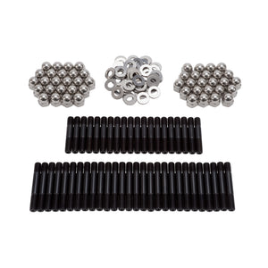 The Edelbrock #8502 bolt kit contain a complete set of the highest quality head bolts and hardened washers available. Cold-formed to ensure molecular integrity and heat treated prior to thread rolling and machining. Reduced diameter bolt heads eliminate the need for valve train removal to facilitate cylinder head re-torqueing. Hardened and parallel-ground washers are included. Rated at 170,000 p.s.i.