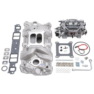 The Edelbrock #2023 Single-Quad Manifold and carb kit is designed for 1957-86 Small-Block Chevy applications. With a Manifold and Carb Kit, it's easy to upgrade your induction system with the best combination of Edelbrock proven performance and looks in a single box. These kits include: an Edelbrock manifold, Performer or Thunder Series AVS carb, chrome fuel inlet, intake gasket set, intake bolt set and carb stud kit. The manifold and carbs are available with a standard satin finish or with our bright EnduraShine chrome-like finish for long lasting show quality looks.