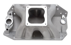Edelbrock part #28001 Big Victor 2 Spread-Port intake manifold is designed for large cubic-inch or high rpm drag racing big-blocks with Edelbrock Big Victor, Dart Big Chief or Brodix Big Duke cylinder heads, this manifold has an average runner area of approximately 4.75 sq. in. The port exits have been reduced to accommodate the wide variety of intake port sizes and require port matching. The runners have a minimum corner radius of .500" from the plenum to the exit allowing the popular oval port shape to be used. The outside runners are shorter and straighter than competitor's manifolds and the plenum is longer front to back. These features, combined with approximately 5% taper in runner cross-sectional area, give better top end horsepower while maintaining consistency and throttle response off the stop. All applications are equipped with a 4500 Series flange and will accept 2.25" throttle body butterflies without a spacer or modification.