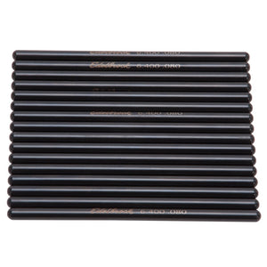 Edelbrock part #9655 Pushrods are designed for small-block Ford 289-302 V-8 engine applications. These one-piece pushrods are manufactured from high quality 4130 Chromoly steel tubing that has been surface hardened for maximum durability. They have precise formed wedged ends for a high quality fit with the cup seats. A black oxide finish is added for corrosion resistance. Pushrod Specifications: - For hydraulic rollers, 5.0L with stud mount. Refer to lifter kit #97453 - Outside Diameter: 5/16" - Length: 6.400"