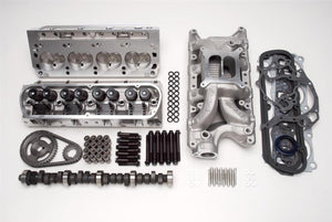 Edelbrock part #2054 Performer RPM Top End Kit is designed for 1962-79 Pontiac 389-467 c.i.d. V-8 engines. This Top End Kit produced 460 HP & 538 TQ on a 468 c.i.d engine with 9.5:1 compression. The kit delivers improved performance in street applications from 1,500 to 6,500 rpm range. This kit includes an RPM intake manifold, Performer D-Port 87cc cylinder heads, hydraulic cam and lifters, timing chain complete bolt kits and an Edelbrock gasket set. To get great performance out of any engine, all of the components must work together. For over 30 years, the Edelbrock Total Power Package system has solved the parts matching puzzle for many street performance enthusiasts. With the introduction our Power Package Top End Kits, now you can get the best Edelbrock performance in-one-box, under one part number with "no guesswork" involved.