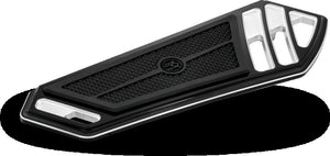 The Superlight Rider and Passenger Floorboards lay down a big platform for big boots and plenty of foot room on those long rides to stretch out. The knurled rubber insert provides a non-sip surface and further reduces vibration. You get great PM looks, extended foot room and the vibration dampening of a floating floorboard.