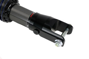 Front HQ Coil-Overs for 2006-2015 Miata. Includes a pair of rebound adjustable shocks, springs, spring mounts and delrin spring washers.