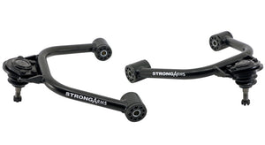 Front upper StrongArms for 1999-2006 Silverado / Sierra 1500 2WD (2007 Classic). Includes a pair of tubular control arms with ball joints and delrin bushings. Powder coated satin black.