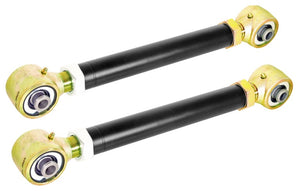 RockJocks rear upper control arms for JT Gladiator vehicles provide length adjustability via RH/LH threaded adjuster ends, allowing pinion angle to be adjusted after the installation of a suspension lift without either end of the arm having to be removed from the vehicle! Additionally the adjustable feature of our arms allows your vehicle to be upgraded to different lift amounts without having to replace the control arms in the future. Arms are fabricated from 1.625 in. o.d. x .250 in. wall DOM steel tubing. For maximum articulation, arms feature forged 2 1/2 in. Johnny Joint rod ends on both ends with 1 1/4 in.-14 RH/LH threads and jam nuts. Arms are finished in semi-gloss black powder coat and the forged ends are finished in gold zinc plating.
