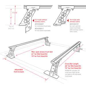 Go Rhino’s XRS Cross Bars allow you to mount a rooftop tent on your truck while preserving the utility and capacity of your factory truck bed. The corner uprights elevate and support the 4-CORE cross bars approximately six inches above the factory bed cap, which provides for unobstructed access to the truck bed. Mounted tents and cargo boxes will sit below the roof of the cab, which reduce wind resistance. Each 4-CORE cross bar works with standard ¼-20 hex head bolts which allows unlimited mounting options for gear, trail tools and all your toys. Installation is easy with no drilling or cutting required. XRS Cross Bars come with a Limited Lifetime warranty on materials and construction and a 5 year warranty on the Textured Black Finish.