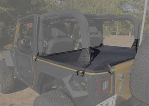The Rugged Ridge Tonneau Cover for 07-18 Wrangler JK is an great-looking way to help secure the contents of your rear cargo area, while helping preserve the interior surfaces from the damaging effects of the elements. The cover secures easily to the tub rails giving the interior a finished appearance and does not limit access to the rear seats or tailgate, when installed. The Rugged Ridge Tonneau Cover is the perfect way to keep your gear out of sight, bringing a little added peace of mind.