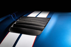 The Verus Engineering Carbon Hood Louver for the Ford Mustang Shelby GT350 helps reduce engine bay heat and pressure. The louver improves cooling stack efficiency, underhood component longevity, and adds a bump in the front end downforce by alleviating air pressure in the engine bay.