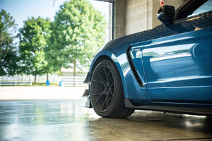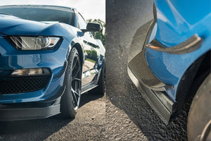 The Verus Engineering Dual-Element Dive Plane (Canard) Kit adds front-end downforce without the necessity of moving the front splitter further forward or lower. This is great for customers that still utilize their GT350 or GT350R on the street and track! The dive planes shift aero balance forward, increase front end downforce, while introducing minimal drag according to our CFD data. The units do so by increasing evacuation out of the front wheel wells.