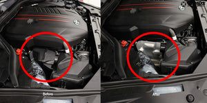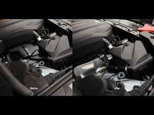 Delete that cumbersome and large resonator for the Mk5 Toyota Supra. Removing the unit dramatically increases the available room in the engine bay, specifically for products like an air oil separator (AOS). Our billet aluminum unit installs like a factory part and slightly increases turbo noise production.