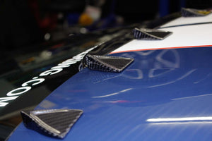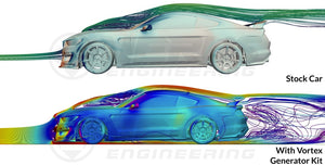 By adding our vortex generators, your factory GT350R will reduce drag and increase downforce over the factory setup. With our rear wing installed, you will still get the benefits of the reduced drag but the downforce increase will no longer be there. The vortex generators are part of the Ventus 1 kit which increases downforce slightly and reduces drag from the factory vehicle.