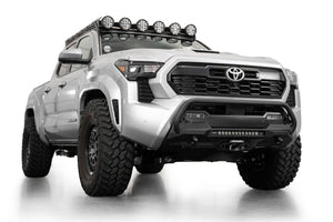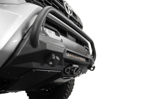 Our Stealth Winch Front Bumper features a top hoop and full recovery options. The bumper includes two D-ring mounts and a standard sized winch mount. Attach a 20-inch single row light bar to our universal center light mount. Adaptive cruise control, sensors, fog lights, and the front camera are all compatible with the bumper. Finished with a hammer and satin black powder coat. Made in America. *Please Note: Installation is bolt-on with minimal non-visual cutting required.*Please Note: The bumper is not compatible with factory skid plates or the TRD Pro trim.